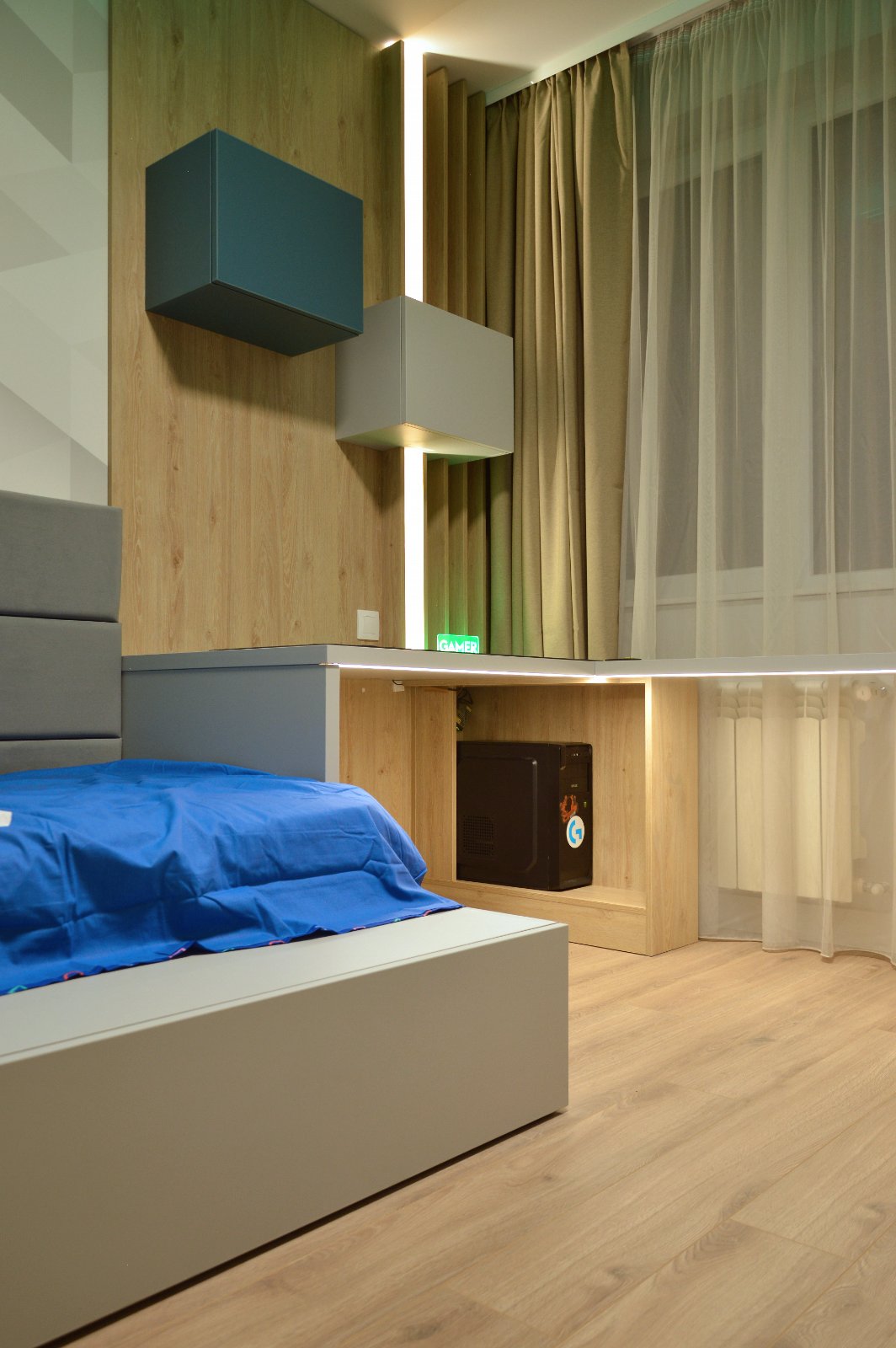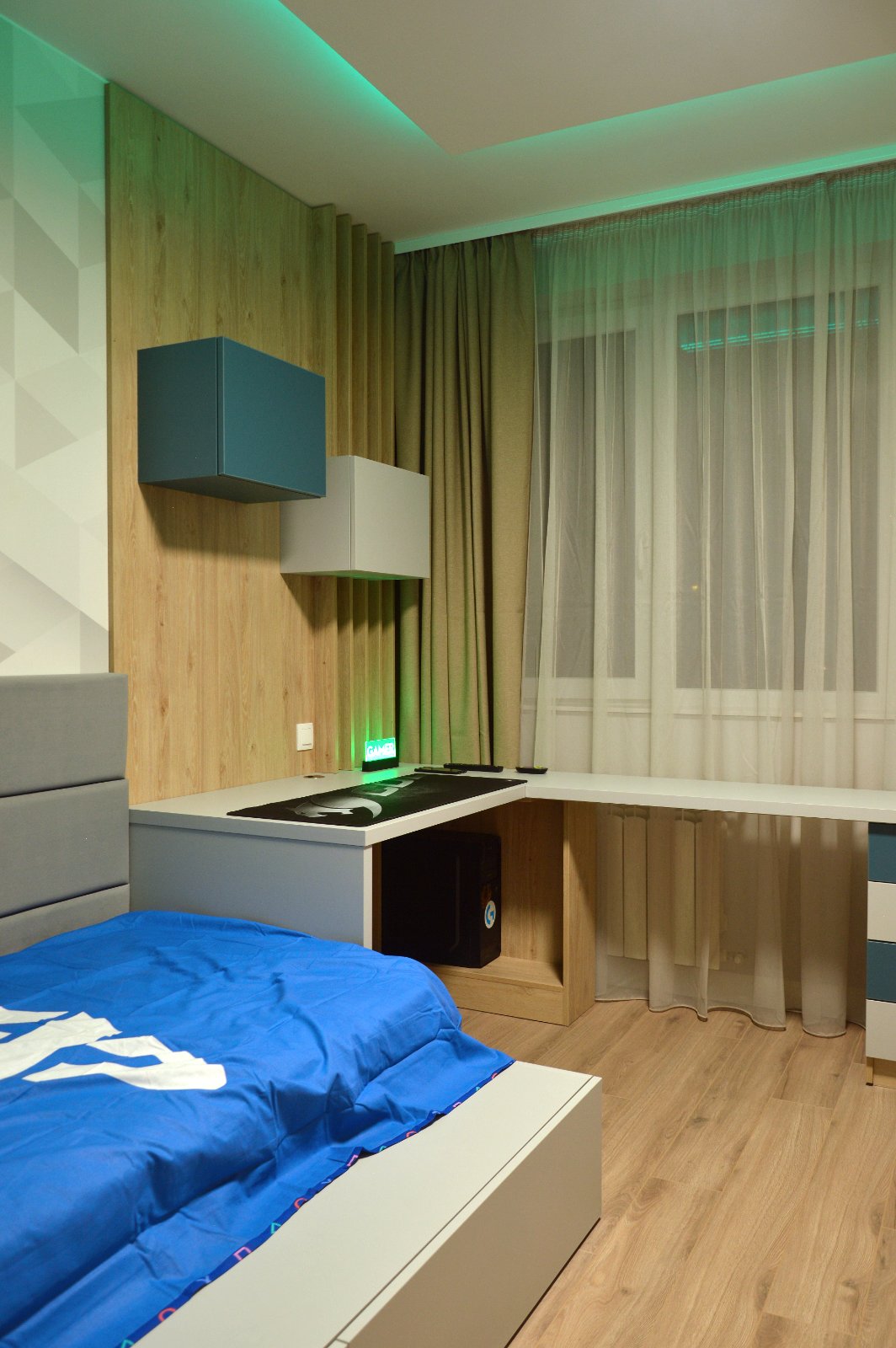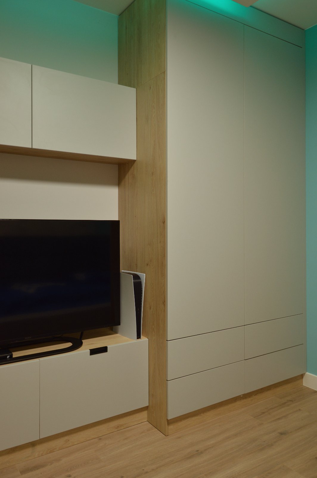 Частен дом в столичен квартал по дизайн и проект на Инж. Марина Бачева / Конструктор Валентина Куманова. Изработен с плоскости лПДЧ Kronospan и обков на BLUM.